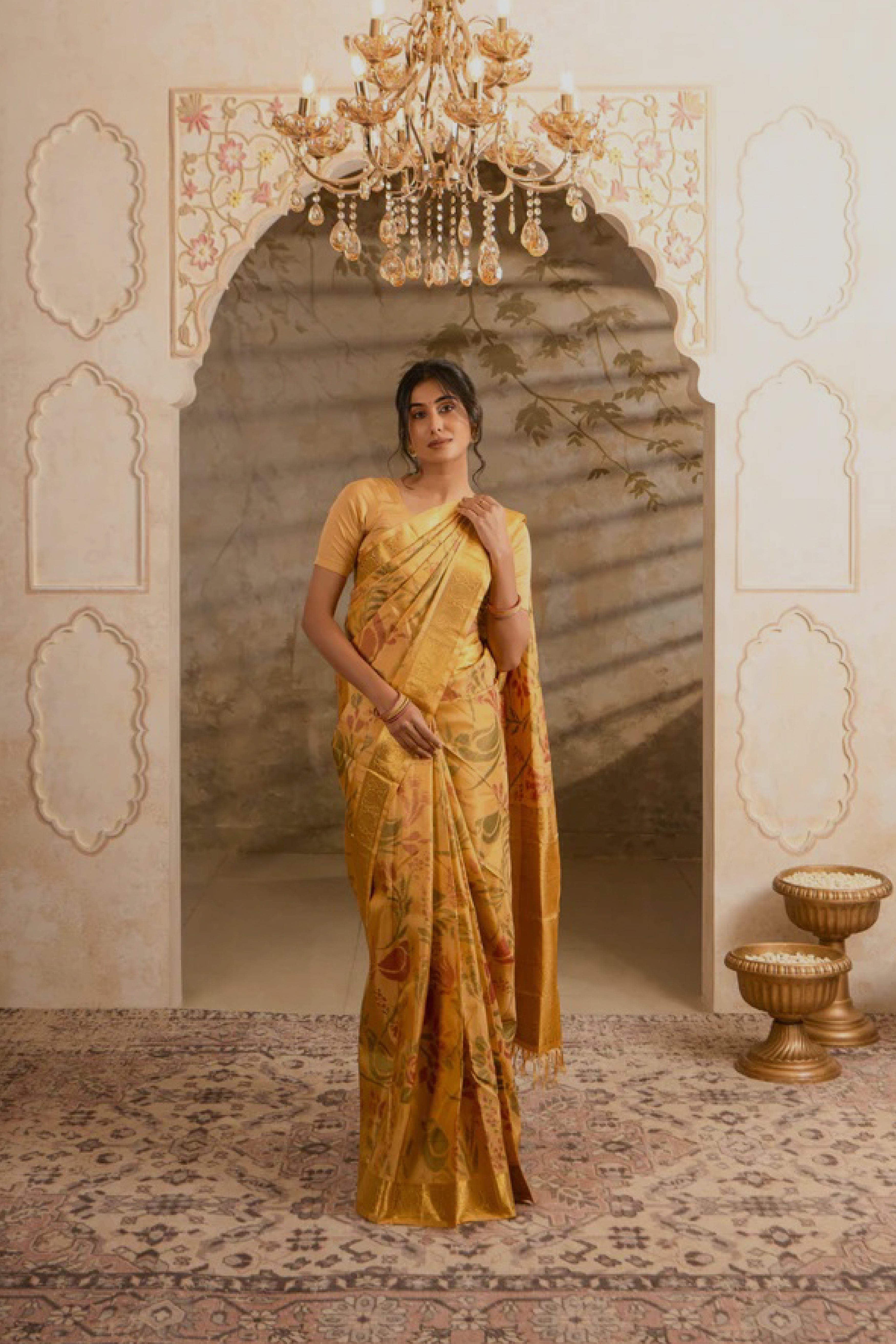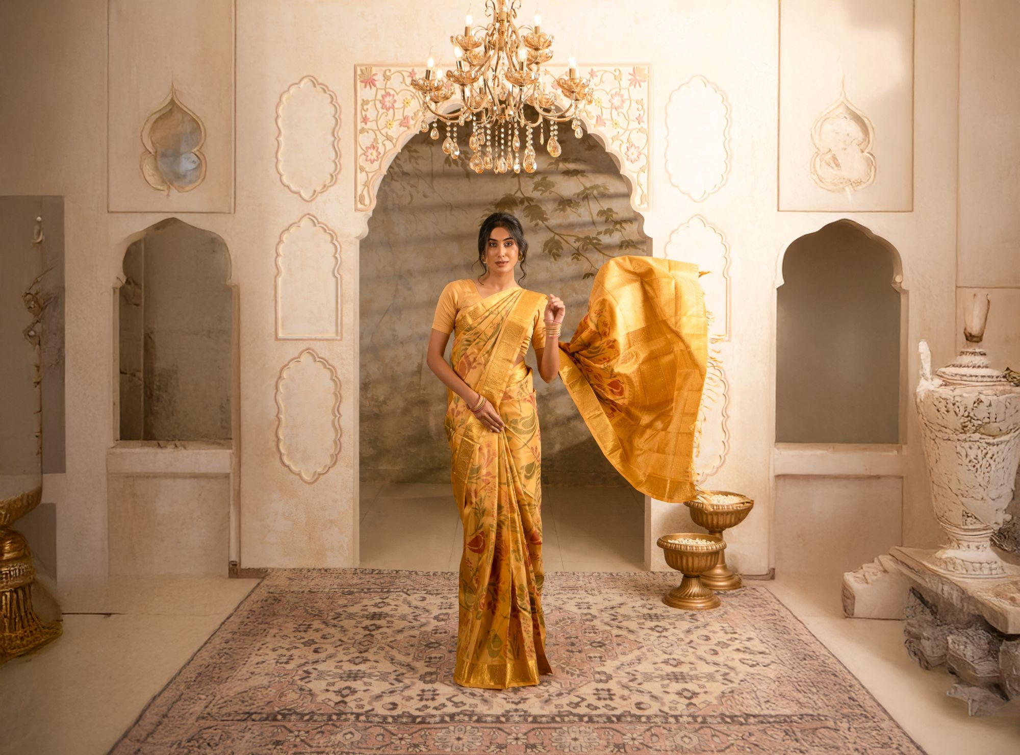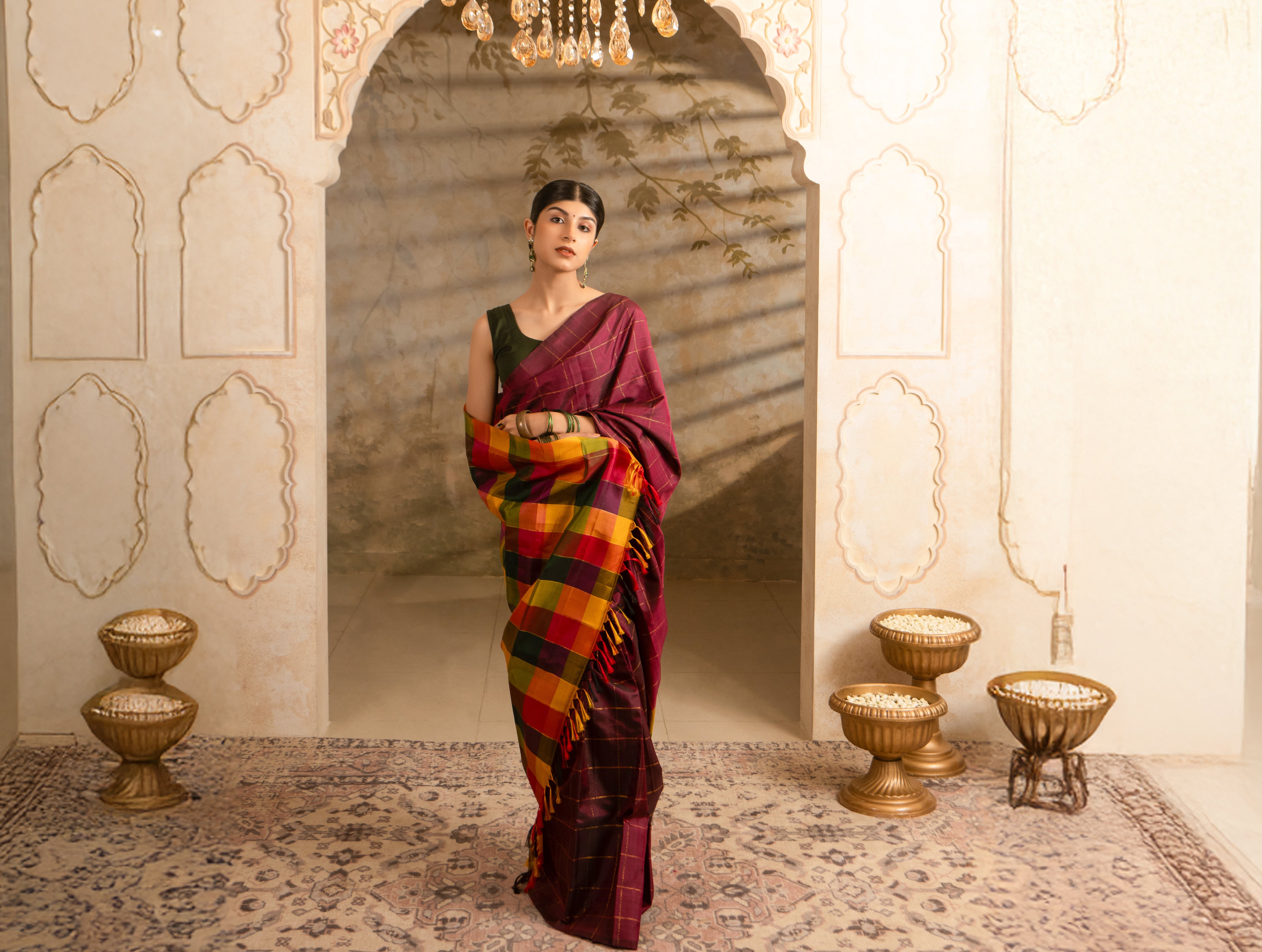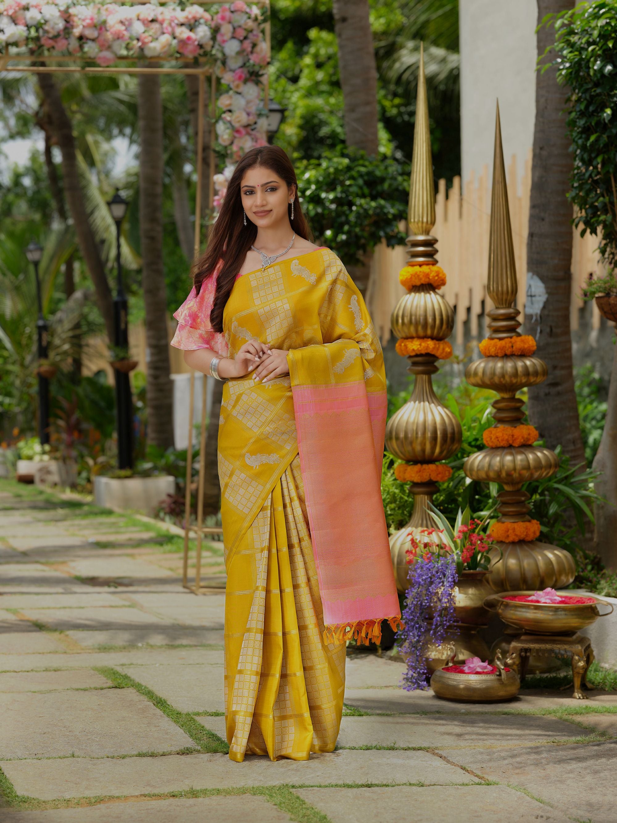 Myil sarees are crafted from the finest silks and adorned with intricate handwork and embellishments. Every piece is a labor of love, meticulously designed to offer an unparalleled experience of opulence.